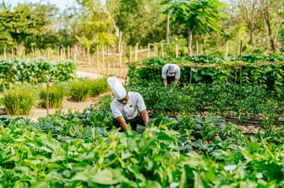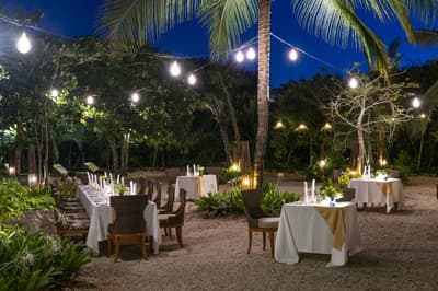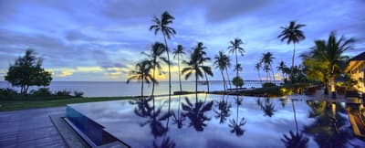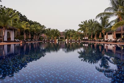 Un hôtel luxueux composé de 66 villas, dans un jardin exotique de 32 hectares, avec une piscine à débordement de 40 m de long.