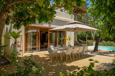 Oubliez tout, et pour commencer vos... chaussures : ce splendide resort pieds nus est situé à Pajé, sur l'une des plus belles bandes de sable de la côte sud-orientale de Zanzibar ! Les toits de palmes traditionnels et les bois blanchis au soleil lui donneraient quasi l'apparence d'un vieux village de pêcheurs, alors qu'une fois au cœur des différentes structures, on entre dans un monde de raffinement inattendu. Les jardins exotiques apportent les touches de couleurs vives. Sur la plage ou encore sous les palmiers, des paillottes de massages sonnent des heures bien douces. Quant au centre de kitesurf, il s'adresse aussi bien aux débutants qu'aux experts de la discipline. Le soir venu, vous trinquerez au coucher du soleil sur le rooftop du bar à champagne, avant d'aller dîner et découvrir la fine fleur de la restauration, notamment en matière d'épices, avec ces divines crevettes tigrées au safran et cet incroyable curry de poisson ultraparfumé ! Si vous venez en amoureux, nous vous recommandons vivement la villa de bord de mer ! Sa grande terrasse, agrémentée d'une piscine privée qui ne gâche rien, relie votre chambre et la salle de bain intérieure et extérieure, au salon et à la salle à manger. Sur le toit, une terrasse panoramique vous promet des instants magiques... Le tout dans un resort qui coche de nombreuses cases écolo, entre recyclage et panneaux solaires.
