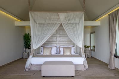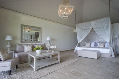 Vous trouverez 12 villas spacieuses de 100 m², avec salle de bain attenante (baignoire et douche) donnant directement sur l'océan. Chaque villa a sa grande terrasse privée, entourée de bougainvilliers en fleurs et de palmiers, avec vue sur l'Océan Indien. Chacune dispose d'un coin salon, d'immenses lits doubles avec de luxueux matelas en mousse à mémoire de forme, de placards, d'une grande salle de bain avec douche à l'italienne, d'une baignoire sur pied, d'un meuble-lavabo à double vasque et d'une piscine privée face à l'Océan Indien.