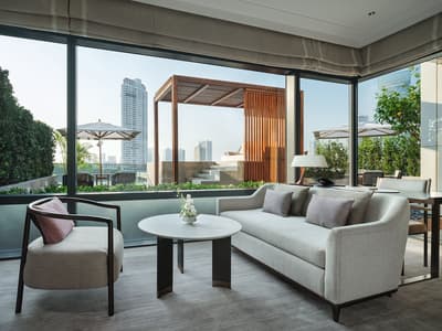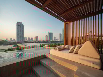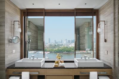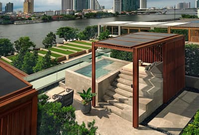 Une vue unique sur le fleuve Chao Phraya à admirer depuis un jacuzzi à débordement. On vous défie de trouver un hôtel plus chic à Bangkok… Impossible !