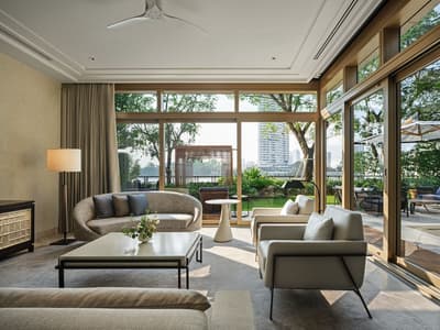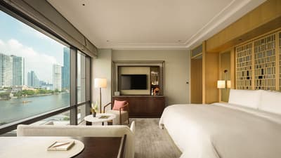 Arrêtez tout ! Vous voulez connaître la vraie particularité de cet hôtel ? Ce n’est pas sa piscine, ni son excellent restaurant gastronomique (trois étoiles Michelin, OK ?), ni son spa aux massages qui régalent. Ce sont ses « culturists », de vrais petits anges gardiens ! Nuit et jour, ils veillent sur vous. Laissez-nous vous expliquer : chaque chambre est munie d’un « culturist » chargé de s’occuper de vous pendant votre séjour. Ils sont tout simplement adorables et vous choient comme leurs propres enfants : petits mots, impression de votre photo Insta, conseils de visites. Bref, la totale ! Encore mieux, ils vous ont préparé des activités faisant honneur à la culture thaïlandaise. Atelier peinture, partage de traditions ou encore yoga et tai-chi, vous n’allez pas vous ennuyer. Et tout ça, ce n’est rien à côté de la vue unique sur le fleuve Chao Phraya qui va vous en mettre plein les yeux. Comme si les chambres n’étaient pas assez chic comme ça, la suite Verandah dispose d’un jacuzzi à débordement sur sa terrasse. Une façon magique d’apprécier la vue… Et puisque l’hôtel est bien situé, ça fait encore plus de temps pour rester dans le jacuzzi !