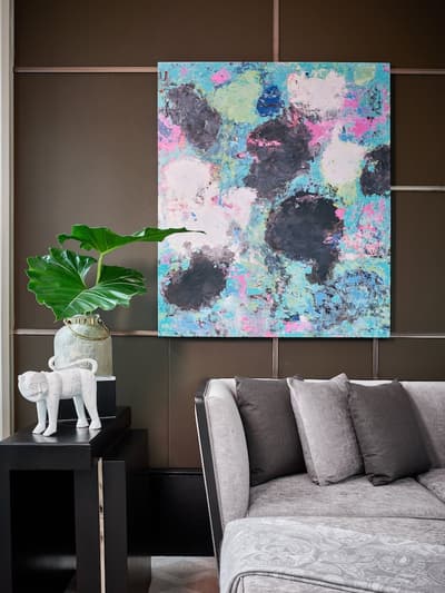Sophistiquée et très chic, elle est très élégante. Le panneau vitré laisse pénétrer la lumière naturelle et crée un ensemble lumineux et accueillant. Les murs et le parquet de couleur clairs rendent la pièce harmonieuse. Elle est de style épuré avec de belles lampes contemporaines.
