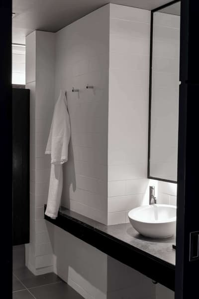 C’est un petit nid douillet ! Son grand panneau vitré profite d’une vue merveilleuse sur les hauts bâtiments de la ville. Agréable et très confortable, elle dispose d’un petit coin salon avec une banquette et une petite table. Salle de bain moderne meublé d’une baignoire et d’une douche à effet de pluie.