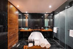 Encore plus spacieuse, elle offre un séjour très agréable dans un ensemble luxueux. Cette suite privilège procure un accès direct aux installations exclusives du complexe. Son grand panneau vitré profite d’une vue merveilleuse sur les hauts bâtiments de la ville ou sur le parc. Elle dispose d’un fauteuil confortable et d’un bureau dans un coin de la chambre. Salle de bain moderne meublé d’une baignoire avec vue et d’une douche à effet de pluie.