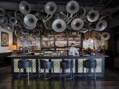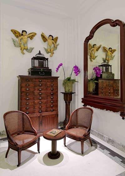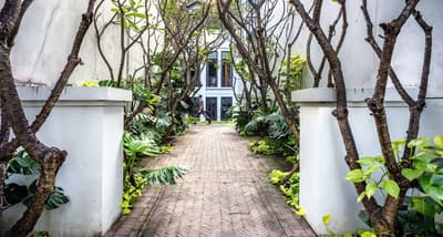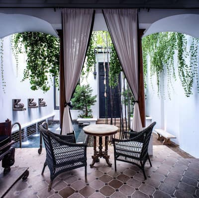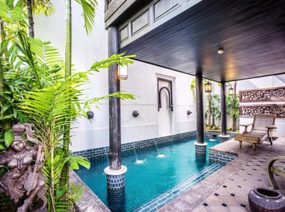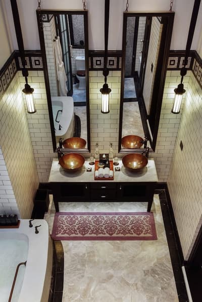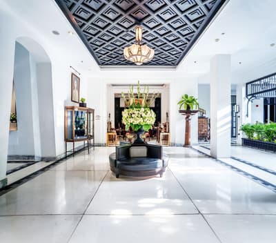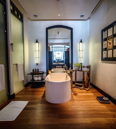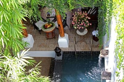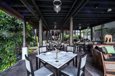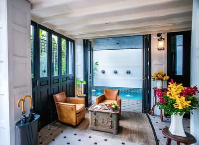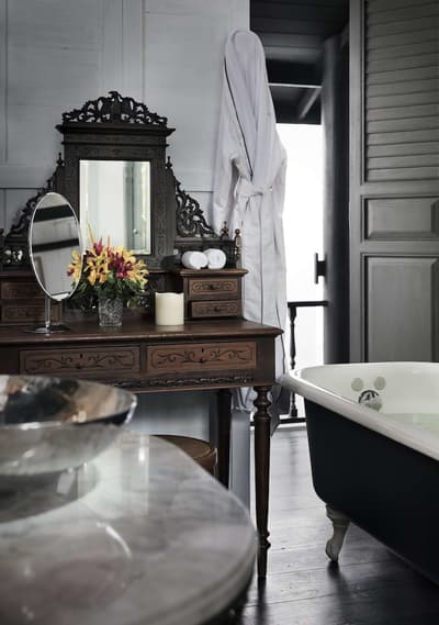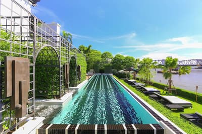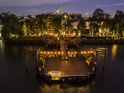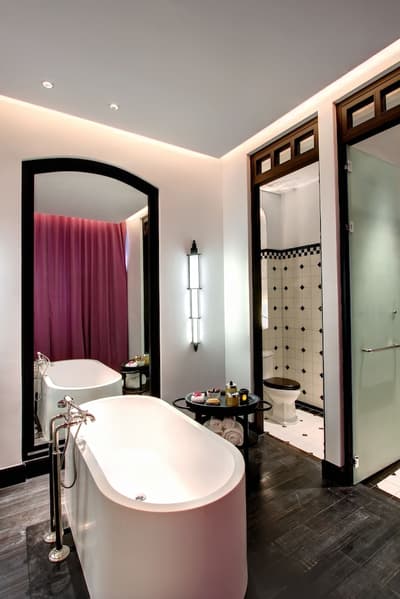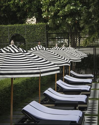 Comme le chante si bien Aznavour, The Siam Bangkok est « for me, for me, formidable ! » Cet établissement est un véritable havre de paix, dans toute sa splendeur. Vous avez même du mal à croire que vous êtes en plein centre-ville… Le Siam Bangkok est une adresse luxueuse qui rassemble autant d’œuvres d’art et d’antiquités qu’un musée. Il faut des heures pour admirer toutes les pièces rassemblées au sein de l’hôtel. La déco vous plonge dans l’ambiance de l’âge d’or du règne du roi Rama V. Mais ne vous étonnez pas si vous y voyez une ressemblance avec le musée d’Orsay car l’un des architectes (Khemvadee Paopanlerd, si vous voulez tout savoir) s’en est inspiré ! Les intérieurs et les extérieurs ont été dessinés par le célèbre Bill Bensley, un des 100 designers les plus connus au monde. Les tons noir, blanc et crème, sont d’une simplicité déconcertante et pourtant il s’en dégage une classe difficilement égalable. Perdue au milieu des 12 000 m² de la propriété, la piscine à débordement hyper design longe le fleuve Chao Phraya. Votre transat est installé dos au bassin de 22 mètres mais face à la rivière. Il ne vous manque plus que votre petit cocktail… Ah non, c’est bon, le barman du Bathers Bar vient de vous l’apporter !