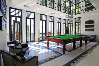 Elle est élégante grâce à son intérieur sophistiqué et chic. Elle incorpore un style italien à des éléments traditionnels thaïlandais. Elle donne une sensation d’espace, parfaite pour profiter d’un cadre relaxant. Les meubles en bois foncés ajoutent de l’élégance à l’ensemble.