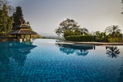 Au cœur du triangle d’or, à la croisée des chemins de la Thaïlande, du Laos et de la Birmanie, il existe un refuge qui vient en aide aux éléphants abandonnés et maltraités. Adossé à ce camp coupé du monde, l'Anantara Golden Triangle adopte le style pagode et semble surgir de la jungle, épaisse et luxuriante. L’arrivée dans cet hôtel est déjà une aventure en soi. On peut y accéder par la route, bien sûr, mais aussi en bateau longue queue, en remontant un affluent du Mékong mythique. Amoureux de la nature et protecteur de la biodiversité, vous allez être servi ! A la nuit tombée, l’ambiance sonore des lieux est incroyable : des millions d’insectes et d’oiseaux nocturnes chantent la sérénade dans une sonate parfaitement orchestrée. Prenez un instant pour plonger dans la piscine histoire de vous rafraîchir, avant d’aller prendre un cocktail au bar ou de dîner au restaurant. Puis allez passer la nuit en pleine jungle, au plus proche des pachydermes ! Un rêve de luxe en contact direct avec la nature sauvage. Votre séjour loin de tout s’annonce inoubliable...