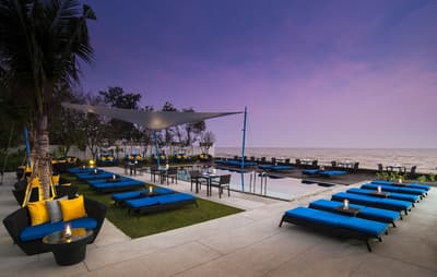 Parmi les principales stations balnéaires donnant sur le golfe de Thaïlande, Hua Hin est un must ! La clé de son succès ? Une plage de sable fin sur des kilomètres. C’est justement là, légèrement en retrait du front de mer, que se trouve l’Amari. Ses six bâtiments entourent une grande piscine-solarium dans laquelle on se voit très bien passer des heures, assortie de très beaux jardins. Inondées de lumière, les chambres et suites affichent une déco plutôt moderne, pimentée de quelques pièces d’artisanat. Plus on monte dans les étages, plus la vue des balcons est spectaculaire. Le kids club, flambant neuf, est animé par une joyeuse équipe qui chouchoute les enfants… et semble s’amuser autant qu’eux. Du côté du spa, bonne surprise aussi avec des soins et massages vraiment personnalisés, et cerise sur le gâteau, un salon de beauté et de coiffure pour peaufiner son look avant de rejoindre le beach club. Le point fort de l’hôtel, c’est lui, « the » beach club dans toute sa splendeur, avec piscine, transats, bar, restaurant, un brin de musique, et tout ceci juste devant la plage de Khao Takiab. Avec un tel décor, l’atmosphère est évidemment très, très cool. On commande un cocktail, puis une grillade ou un plateau de fruits de mer, et hop, la soirée est gagnée.