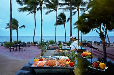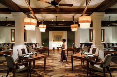 Hua Hin est l'équivalent de notre fort de Brégançon pour la famille royale ! Et ce QG ne date pas d'hier ! Dans le genre cabine de plage très améliorée, le palais de Rama VI témoigne de l'engouement de la couronne pour cette station balnéaire, dès le début du XXème siècle. S'il avait vécu aujourd'hui, sa majesté aurait sans doute choisi de descendre directement à l'Anantara ! Le resort lui aussi fait face à l'océan. Le long de ce littoral, il n'y a pas de plage à proprement parler, même si l'on peut marcher dans l'eau à marée basse. A défaut de bains de mer, vous profiterez des transats pour prendre un bain de soleil. Sinon, il vous reste encore les deux piscines paysagées qui sont pour le coup : royales ! Avec ses 5 hectares de nature tropicale, le site est franchement grandiose. En arrivant à l'hôtel, des frises d'éléphants vous mettent dans l'ambiance… Les différents pavillons du complexe se reflètent dans de superbes bassins à nénuphars. C'est zeeeeeen ! Tout comme le Spa, bien gardé derrière son mur de fortifications, et théâtralisé à l'instar d'un temple. Vous vous laisserez aller au plaisir d'un rituel d'accueil parfumé, avant de tester un gommage au curcuma, suivi d'un massage thaï alternant la pose de compresses de sable humide et chaud. Puis vous prendrez un jus détox au Lagoon Bar, avant votre tête-à-tête au Sai Thong, les pieds dans le sable...