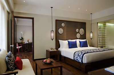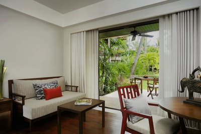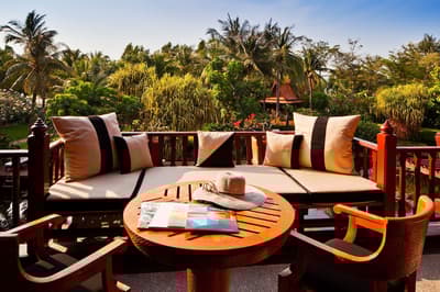 Elle bénéficie d'un vaste espace de vie et offre une vue imprenable sur les jardins. Elle est dotée d’un balcon ou d’une terrasse spacieuse avec sa méridienne intégrée, d’où vous pourrez prendre votre petit-déjeuner, vous détendre et profiter du soleil en toute tranquillité. À noter que la suite Anantara dispose d’un accès exclusif à la piscine et au bar du lagon à proximité.