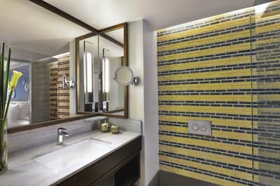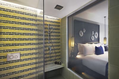 Vues sur la mer, Balcon ou terrasse, Baignoire en terrazzo et douche séparée, Machine à café Nespresso, Lit king-size ou lits jumeaux, Station d'accueil pour iPod, Privilèges du lagon.