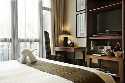 L’ensemble est dans un décor frais et raffiné avec des planchers en bois de teck, un mobilier élégant et des œuvres d’art et de soieries thaïlandaises traditionnelles. La salle de bain est bien équipée et vous pourrez vous prélasser dans un bain revigorant dans la baignoire en terrazzo; à noter que la douche est séparée. Le tout dans une très belle atmosphère zen et accueillante !