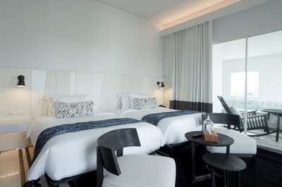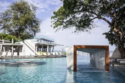 Cha Am est la destination de week-end des habitants de Bangkok. Vous aurez donc peu de touristes et des prix tout doux ! En revanche, si la mer est très belle, elle ne se prête ni au snorkelling, ni à la plongée. C'est un problème de limpidité. Mais que ça ne vous empêche pas de vous baigner ou de faire du jet ski ! La piscine à débordement du Veranda Resort & Villas Hua Hin est une sacrée belle alternative : immense, avec un bain à remous et un rideau d'eau. Elle donne directement sur la plage de sable fin, où le resort a posé ses transats irrisés, ses poufs rouges carmin et ses cabanas immaculées ... Reconnaissables entre tous, car le resort est signé Mgallery, soit la marque pop du groupe Accor. On est donc à des milliers d'années lumière de la Thaïlande traditionnelle ! Toutefois, l'archi fait la part belle aux perspectives et la transparence des différentes structures met le site en valeur. On adore la passerelle en verre qui court au-dessus du vide, depuis l'étage du ISeaRestaurant, the spot instagrammable par excellence ! Le mobilier n'en est pas moins surprenant, en partie d'ailleurs réalisé par des artisans locaux. On ne sait jamais s'il s'agit vraiment d'une chaise ou d'une sculpture ! Tout est bleu, tout est blanc, sauf lorsque vous décidez de jouer avec l'interrupteur de votre chambre pour changer la couleur des Leds. Et pour optimiser les sensations, direction le spa où vous offrir un massage thaï digne de ce nom. Je ne saurais mieux vous conseiller le Veranda Herbal Compress dès votre arrivée, un anti-fatigue radical !