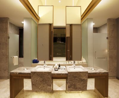 Style résolument minimaliste, la chambre comprend un lit king-size de 7 pieds, un mobilier design, un parquet ciré et des équipements haut de gamme. L’élégante salle de bain est tapissée de beaux carreaux complexes, d’un mur de douche en verre élégant, d’une double vasque et d'une douche à effet pluie. Le tout dans une ambiance sereine et tropicale !