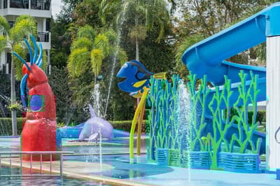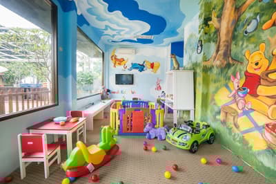 Imaginez la scène : vos chers bambins sont au mini-club. Ils s’éclatent avec leurs nouveaux copains dans la salle de jeux, font des saltos sur le trampoline, plongent dans la piscine à balles, glissent sur le toboggan, remontent, reglissent… bref, ils vous ont oublié. Et c’est très bien ainsi puisque de votre côté, vous comptez bien faire un vrai break ! D’autant que l’hôtel s’y prête : malgré sa taille, il est calme et reposant et ça, ça vaut de l’or. Vous allez adorer son architecture thaïe modernisée, son magnifique lobby habillé de bois clair, ses chambres à la déco épurée et aux tons délicats. Encore mieux, les villas face à la mer, certaines avec une piscine privée : détendez-vous, oubliez tout… Rien d’agressif ici, tout incite au lâcher-prise. Y compris le décor naturel : le jardin tropical, le lac au milieu du domaine qu’on appelle ici lagon (bon, ok, c’est un peu exagéré) et la plage vierge, parfaite pour de longues balades. Un paradis sur terre avec aucun transat pour obstruer la vue, juste le sable blond, la mer émeraude… et aussi un filet de beach volley et des balançoires accrochées entre deux arbres. Pour la photo-souvenir, n’oubliez quand même pas d’aller chercher les enfants… #instagram !