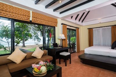 Spacieuse, cette chambre familiale de luxe profite d’une belle vue sur le jardin ou sur la mer et peut accueillir confortablement des amis ou une famille. Elle peut profiter d’une vue sur le jardin ou sur le lagon depuis votre confortable balcon privé et une chambre communicante peut être disponible.