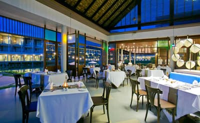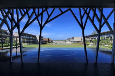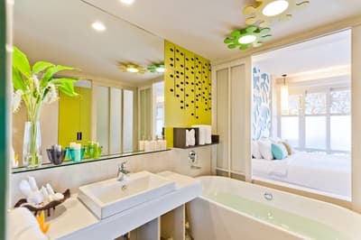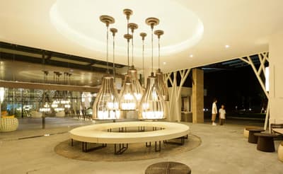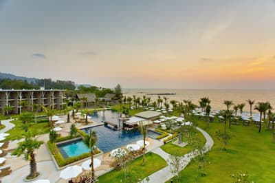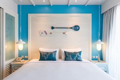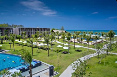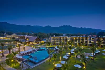 The Sands By Kata Thani est un peu le spot rêvé pour passer vos vacances en bord de mer, dans l’une des stations balnéaires les plus chouettes de la région : Khao Lak. Un design frais et une architecture au look définitivement moderne, qui contraste à merveille avec les collines en toile de fond. L’hôtel est gigantesque mais s’adapte selon votre mood : chiller en amoureux ou profiter en famille. Les adultes se voient réserver leur propre piscine, des pavillons thaïlandais offrent des massages divins avec vue sur l’océan et les chambres sont une véritable invitation à la paresse. Côté happy family, cris de joie garantis à la vue des lits superposés avec toboggan et des baleines peintes sur les murs des chambres. Le paradis des plus petits ne s’arrête pas là, il y a aussi un parc aquatique en plein air, une piscine à boules ou encore le Manta Ray Bistro et son ambiance kids friendly. Les parents peuvent au choix les accompagner toute la journée ou les confier à des animateurs à l'imagination débordante : ateliers cupcakes, construction de cerfs-volants, initiation à la boxe Thaï pour les ados et mini-boums le soir pour tous ! Un complexe aux multiples facettes qui met tout le monde d'accord ! Notre crush by night : la féérie des centaines de guirlandes lumineuses qui illuminent l'hôtel chaque soir.