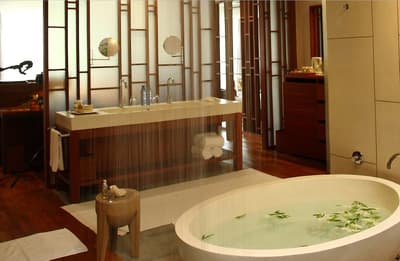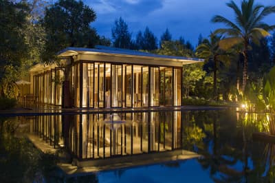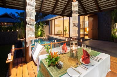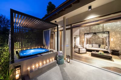Nichée parmi la nature luxuriante du complexe, elle baigne dans une atmosphère calme et sereine. Son espace extérieur est généreux avec une terrasse et un pavillon traditionnellement connu comme le thaï sala pour se relaxer et apprécier le climat. Petit coin salon en chambre avec des fauteuils confortables. Salle de bain semi-ouverte avec une baignoire contemporaine et douche à effet de pluie.