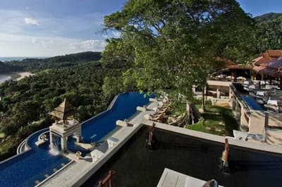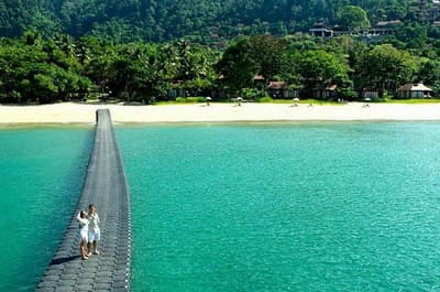 Connaissez-vous le coup de foudre ? Le vrai, l'unique ? Non ? Alors, préparez-vous ! Icône de la Kantiang Beach, l'hôtel surplombe les eaux turquoises de la mer d'Adaman, à l'image d'un palais exotique. Les chambres des villas brillent d'un raffinement extrême, mêlant pierres et bois bruts. Postez-vous sur votre balcon et laissez-vous porter ! Une brise marine vous conduira jusqu'à la plage et les bruissements d'ailes jusque dans la canopée. Le Pimalai est un domaine où tout a été imaginé pour servir dame Nature, sans jamais l'étouffer. Cette jungle dépaysante vous donnera l'impression d'être au milieu de nulle part. Les chambres s'étagent telles des terrasses naturelles au-dessus d'une cascade de perspectives, des piscines à débordement jusqu'à la baie. La piscine sommitale a tout d'un bassin sacré. Des marches y accèdent à l'image des ghats de Bénarès et un dais central semble attendre le retour d'une statue processionnelle. Le choix d'une déco contemporaine, à la fois sobre et chaleureuse, fait la place belle au bois sombre et aux couleurs claires. On craque sur les salles de bain intégrées derrière des murs de pierres de lave. Comble de l'exotisme ! Côté saveurs, les effluves du curry aux crevettes du Spice and Rice Restaurant vous transporteront elles-aussi dans univers de raffinement. Impossible de vous ennuyer, entre les courts de tennis, les balades à vélo et les sessions de wake board ! Le soir, vêtu de votre tenue la plus légère, votre seul accessoire sera un cocktail aux mille et une couleurs...