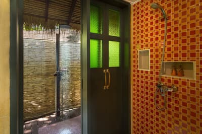 C’est un petit nid douillet ! Entourée par la végétation luxuriante de l’hôtel, elle bénéficie d’un espace agréable et très serein. Son espace extérieur est généreusement aménagé d’un beau fauteuil et d’une petite kitchenette. C’est un espace ouvert trouvant un juste milieu avec la nature. Elle dispose d’une douche à effet de pluie en extérieur. C’est l’idéale pour se couper du quotidien.