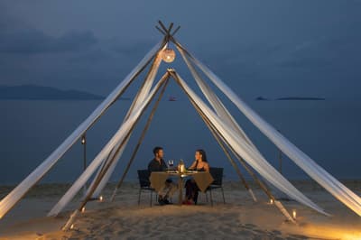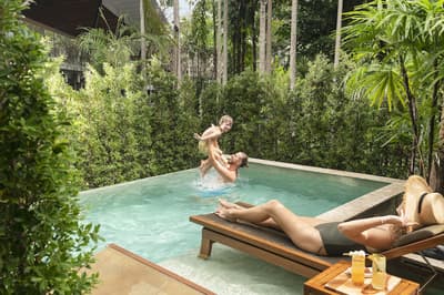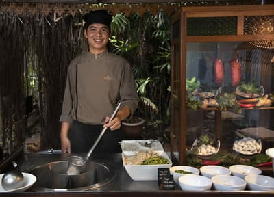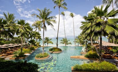S’immerger dans la nature pour mieux déconnecter : voilà la recette miracle de cet Anantara situé sur la côte nord de l'île de Koh Samui. Et ça marche ! L’hôtel se fond dans son environnement et vous, vous fondez de bonheur : quand vous piquez une tête dans la piscine à débordement de 30 mètres de long, vue sur mer, vous oubliez tout. Quand vous flânez au hasard des chemins dans les jardins luxuriants, vous êtes seul au monde, ou presque. C’est aéré, calme, zen. Dans les chambres, vous craquez pour la baignoire en terrazzo face aux plantes exotiques, pour le balcon posé à la cime des arbres avec son petit sofa. Au bar, vous profitez de l’happy hour face à la plage et au coucher du soleil. Ici, on chille en douceur, on respire à pleins poumons, on s’inspire ! La pause enchantée continue au dîner, en tête à tête, les pieds dans le sable… ou dans l’herbe. Evidemment, le chef cuisine bio et local. Ses péchés mignons : crabe géant, champignons, soja, noix de coco… Entre-temps, vous aurez largement profité du spa, qui justifie à lui seul le choix de cet hôtel : 3000 m² entre bassins de nénuphars, sculptures traditionnelles en pierre et pontons en bois. Bain aux fleurs de frangipanier, gommage détoxifiant au thé vert… Tout va bien, laissez-vous aller !