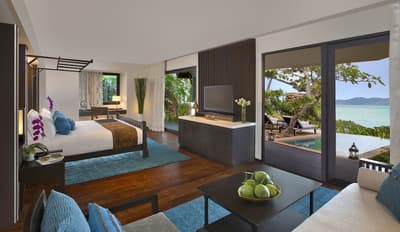 Elle profite d’une vue imprenable sur la mer et dispose d’un balcon privé meublé d’où vous pourrez vous détendre en savourant votre café. À noter que vous pourrez vous chouchouter avec les produits apaisants du Spa Anantara. À noter qu’un lit supplémentaire peut être installé.