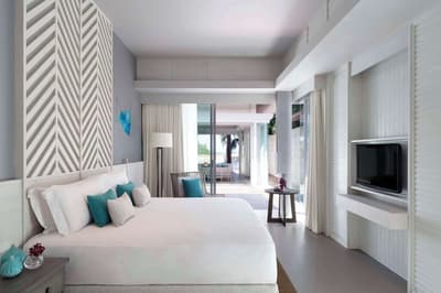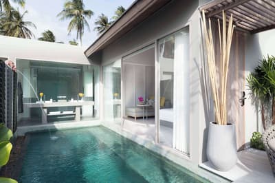 61 m² d'espace intérieur et 44 m² d'espace extérieur, Accès direct à la plage, Piscine privée avec terrasse extérieure et solarium, Coin salon avec canapé, Lit king-size, Douche à effet de pluie, Mini bar, Machine à café Nespresso, Coffre-fort électronique dans la chambre, TV avec chaînes satellite, Apple TV, Bureau de travail, Wi-Fi gratuit dans la chambre, Climatisation à réglage individuel, Haut-parleur Bluetooth portable.