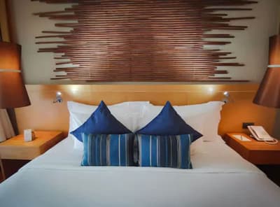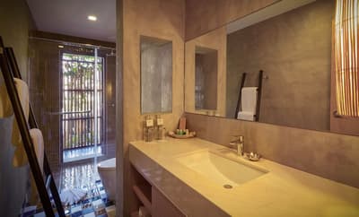 Entourée par la végétation luxuriante du jardin tropical de l’hôtel, elle baigne dans une atmosphère reposante et propice à la détente. Terrasse ou balcon complétement aménagé pour profiter du climat tropical. Elle peut accommoder un lit King ou 2 lits doubles. Elle dispose d’un canapé lit. Salle de bain chic avec douche à effet de pluie.
