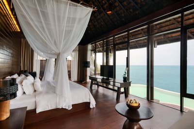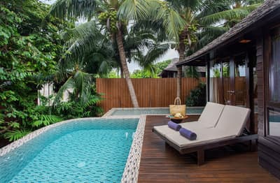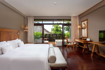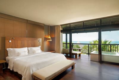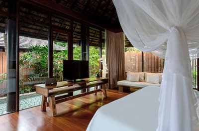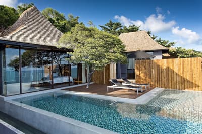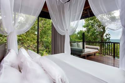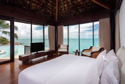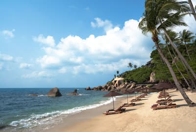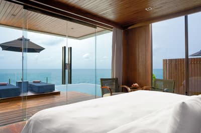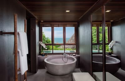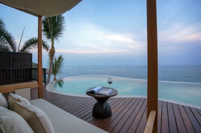 Un beau mix de matériaux naturels, bambou, teck, cèdre, apporte un esprit contemporain à ce lieu vraiment à part sur Koh Samui. Conçues comme des clifftops, les villas de style thaï offrent des promontoires totalement dingues sur la mer de Chine ! En première ligne, c’est sûr, vous n’allez plus lâcher votre smartphone. Mode selfie activé ! Partout dans l’hôtel, vous pourrez découvrir l’artisanat thaï, puisque tout le mobilier a été spécialement commandé auprès de créateurs locaux. Et durant la journée, de nombreuses activités locales vous attendent : boxe thaïe, yoga, cours de cuisine, etc. Ensuite, ce resort est résolument écolo friendly et pousse l’engagement au maximum. Sur place, vous trouverez un jardin bio qui alimente la cuisine, sans oublier le traitement naturel des eaux usées. Et l’hôtel est sans plastique. Cerise sur le gâteau : au moment du sunset, on se retrouve entre potes ou à deux sur l’immense rooftop qui domine littéralement toute la baie. C’est vraiment canon ! Laissez-vous emporter par la quiétude des lieux et la beauté sauvage de la petite plage de Laem Nan. Un avant-goût du paradis ?