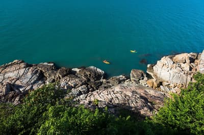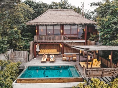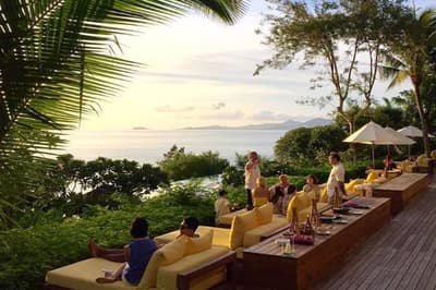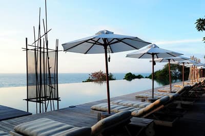 L'adresse la plus cool de Koh Samui a investi la pointe Nord de l'île, en apesanteur au-dessus de l'océan. Votre premier coup de foudre ? Une passserelle en bambou qui vous mène à une piscine olympienne, bordée de chaises longues en textile blanc. Une fois allongé, vous ne ferez plus la différence entre l'eau, la mer et l'horizon. Gagnez de la hauteur et installez-vous sur l'indécente terrasse en teck et en bambou du Dining On The Rocks, qui porte bien son nom. LA touche de folie de l'hôtel : un promontoire exagérement beau qui offre une vue à 270 degrés autour de votre assiette. La cuisine est digne d'un palace et vous ne quitterez jamais cet endroit sans avoir repris trois fois de la viande de boeuf en saumure de sel. Demandez à rencontrer le chef, Sandro Teixeira, qui adore échanger avec les passionnés. L'architecture en belvédère ne s'arrête pas en si bon chemin et les 66 villas du complexe jouissent elles aussi d'une vue splendide, entourée de bougainvilliers et de cocotiers en fleurs. On fond définitivement quand on apprend que trois fois par semaine, un "Under The Stars Movie" est projeté au bar face à la mer. Les mixologistes en profitent pour s'activer en toile de fond et leurs plus beaux shakers arroseront vos soirées de cocktails improbables. Avez-vous remarqué en contrebas les couleurs pastels du coucher de soleil qui se reflètent dans la piscine ? Pour être honnête, nous aussi on a pensé à prendre un bain de minuit...