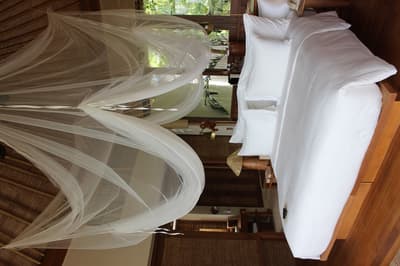 Purement exotique tout en étant luxueux ! Ses grandes baies et fenêtres vitrées créent un ensemble lumineux et procurent une sensation d’espace et d’ouverture. Elle est d’une simplicité exquise et baigne dans une atmosphère faisant rêver. Elle est légère et lumineuse. Son toit en chaume et ses beaux éléments en rotin et en bois complément l’ensemble tropical. Quelques touches de couleurs donnent du peps à l’ensemble.
