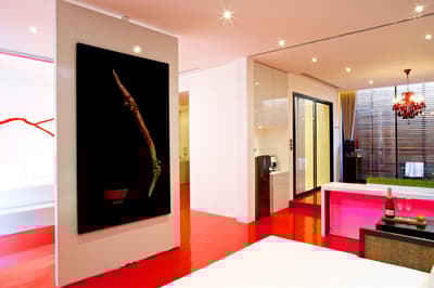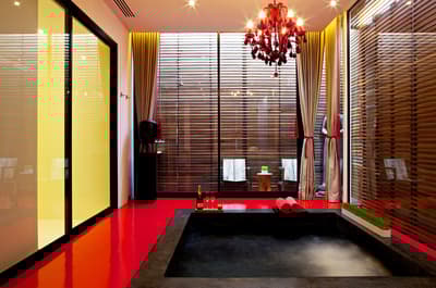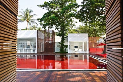 Voici certainement une des adresses les plus trendy de tout Chaweng Beach ! Vous profitez de votre séjour au Library comme on dévore un bon bouquin. Et il y a de quoi faire sur place : les étagères de la bibliothèque comptent 1 400 livres. Rien de tel pour être à la page… The Library est un boutique hotel hyper design, dans lequel vous profitez d’une piscine non pas bleue mais bien rouge écarlate ! Le fond du bassin a été recouvert d’une mosaïque orange, jaune et rouge. Après votre baignade, vous pourrez poster sur les réseaux sociaux vos doigts de pied en éventail, confortablement installé sur votre épais matelas tourné face à la mer. Et si l’angle ne vous convient pas, les gros poufs sur la plage juste en face vous attendent ! Vous rejoignez ensuite votre chambre en traversant le superbe jardin de l’hôtel grâce à une immense allée en bois. Avez-vous remarqué les nombreuses statues blanches représentant quelqu’un en train de lire ? Entre 17h00 et 19h00, rendez-vous à l’Happy Hour organisé au bar de la plage. Les pieds dans le sable, il va falloir choisir parmi une liste de 101 cocktails. Pensez à accompagner votre apéritif de quelques délicieuses tapas originales, à l’image du cheeseburger spring roll ou du Tomm Yum Rum… Le tout arrosé de musique live !