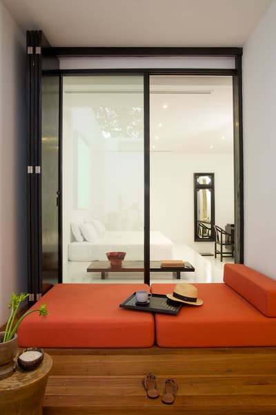 Entourée par la nature luxuriante du complexe, elle baigne dans le calme et la sérénité. Elle dispose d’un balcon privé aménagé de fauteuils confortables et d’une petite table. Petit coin salon en chambre avec son canapé. Elle est agréable et confortable. Salle de bain chic avec douche à effet de pluie.