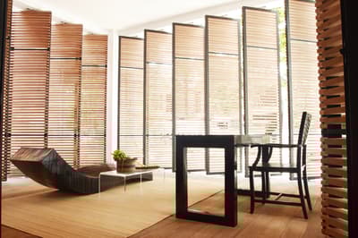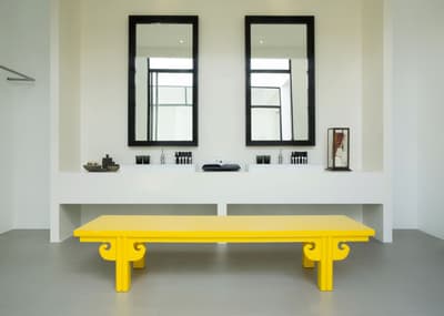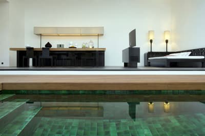 C’est un ensemble minimaliste et épuré. Avec des meubles du style contemporain, elle offre un style résolument design et moderne. Elle mélange métal, bois et verre dans son ensemble pour créer une pièce harmonieuse, luxueuse et tout de même exotique. Des touches de couleurs dorées et rouges apportent du peps à l’ensemble et y ajoutent de l’élégance.