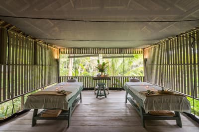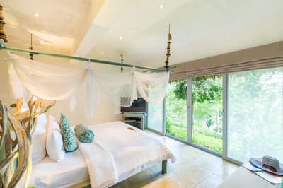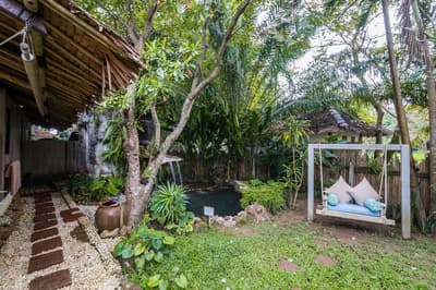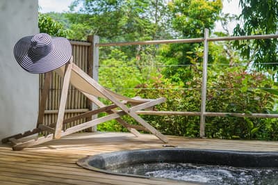 Entourée par la végétation luxuriante, elle est très agréable et baigne dans une atmosphère reposante. Elle profite d’un jacuzzi pour se relaxer. Sa terrasse ou son balcon est aménagé d’un fauteuil en balançoire et de belles chaises. Elle peut accommoder un lit King ou 2 lits doubles et dispose d’un canapé lit. Salle de bain ouverte avec douche à effet de pluie.