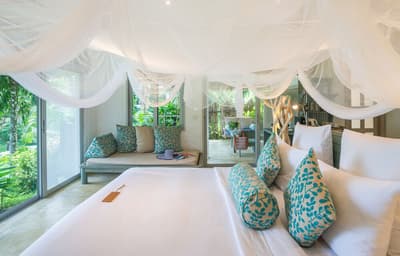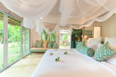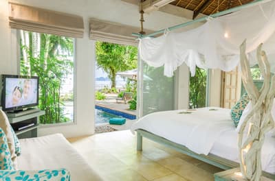 Une eau translucide, du sable fin, des montagnes calcaires et une forêt dense : vous aurez du mal à trouver pire ! Le Paradise Koh Yao porte bien son nom. Installé aux portes d’une réserve nationale, l’hôtel vous offre un véritable décor de carte postale. La baie privée de l’établissement est un petit bijou lové au cœur d’une nature préservée. Et le Paradise Koh Yao fait tout ce qu’il peut pour la conserver. La déco intérieure est un prolongement du décor que vous contemplez dehors. Les matériaux naturels dressent un cadre de vacances tellement chic ! Si vous êtes à la recherche d’intimité et d’isolement, vous ne serez pas déçu. Ce boutique hôtel dispose d’une belle piscine d’eau salée à débordement, dont les formes arrondies s’étalent sur 350 m². Le Serenity Spa a été construit en plein milieu de la forêt. Les salles de soins sont protégées par des kiosques qui offrent une vue à 360 degrés sur la nature environnante. A toute heure du jour ou de la nuit, vous profitez d’une plage qui s’étend sur 400 mètres. Vous pourrez même vous installer dans un hamac à l’ombre entre les cocotiers pour la sieste. Et le bar de plage n’est qu’à un pas de là. C’est ça la philosophie du « barefoot luxury » !