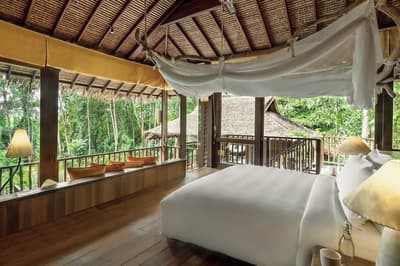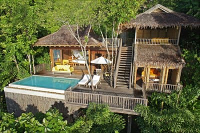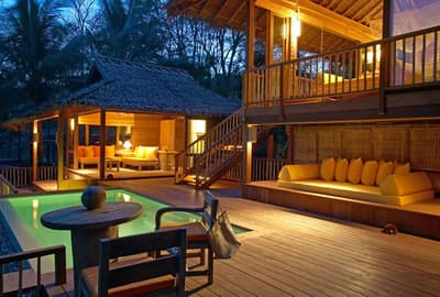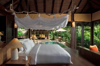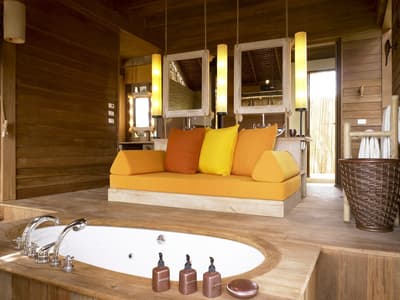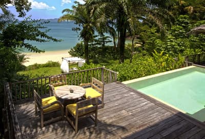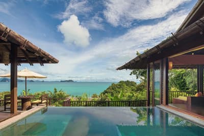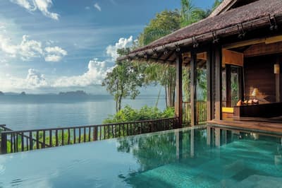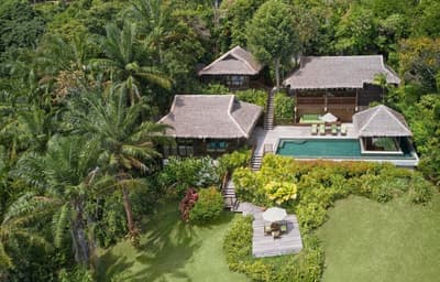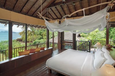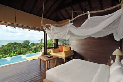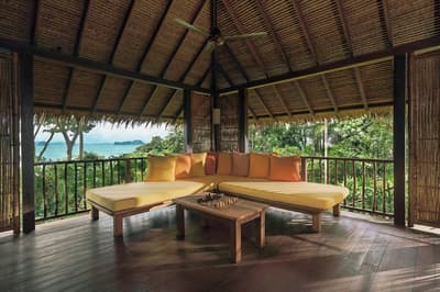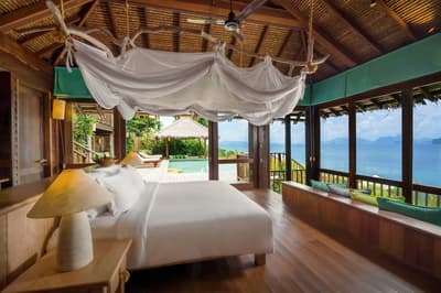 Le top ! Cette belle villa, offre une vue à 180° sur la baie. Nichée parmi la végétation luxuriante de l’hôtel, elle baigne de calme et de sérénité et profite d’un espace ouvert. Son extérieur profite d’une piscine, d’un pavillon et de longues chaises pour apprécier le climat et la vue. Petit coin salon en chambre avec un beau canapé. Salle de bain avec douche en plein air et 2 vasques.