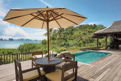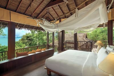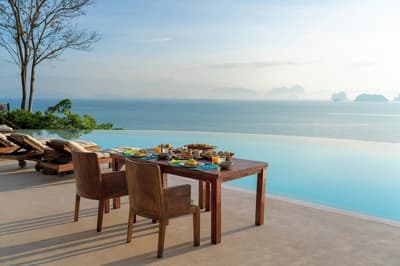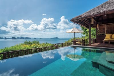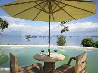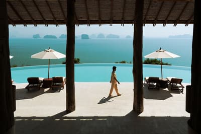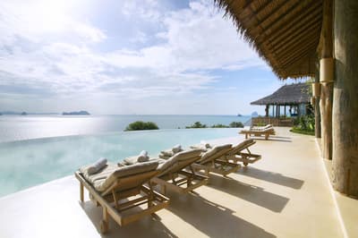 Outrageusement design, l'indécente piscine ovale du Six Senses Yao Noi efface toutes les limites entre le ciel et l'horizon. Perchées au coeur d'une jungle d'Éden, les 56 villas à l'esprit colonial chic offrent une vue extraordinaire sur les pitons rocheux de la baie de Phang Nga. Bienvenue dans l'un des plus beaux hôtels du monde, à moins d'une heure de Phuket. Ici, rien n'est laissé au hasard et tout a été savamment étudié pour vous offrir la quintessence de l'intimité. Les soins délassants du spa ont trouvé refuge dans une maison typique du nord de la Thaïlande où les salles de soins embaumées d'huiles essentielles et éclairées à la bougie se succèdent les unes aux les autres. Autour de la piscine azur, des filets suspendus au-dessus des arbres vous invitent à prendre un bain de soleil en totale lévitation. Contournez la piscine et montez les immenses marches vers le bar du Hilltop pour démarrer l'happy hour beaucoup trop tôt. Le lien avec la Nature est omniprésent : de délicieux fromages artisanaux sont produits à la ferme, les chaises longues sont designées à partir de vieux bois dans le workshop de l'hôtel et le programme Wellness use et abuse des plantes pour détoxifier le corps et l'esprit. On a aussi repéré l'incroyable restaurant The Den et son palais aux toits de chaume, ses canapés purple et ses bassins bordés de nénuphars. On en aurait presque oublié l'argument massue qui finira de vous convaincre : glaces et cookies à volonté toute la journée.