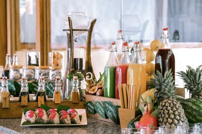 Purement exotique tout en étant luxueux ! Elle est d’une simplicité exquise et baigne dans une atmosphère faisant rêver. C’est un espace ouvert procurant une sensation d’espace. Elle est légère et lumineuse. Son toit en chaume et ses beaux éléments en rotin et en bois complément l’ensemble tropical. Quelques touches de couleurs donnent du peps à l’ensemble.