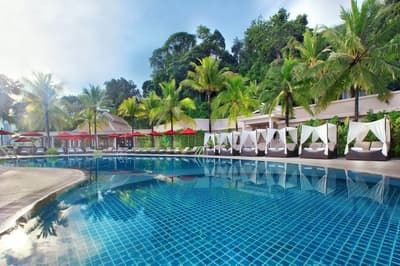 Imaginez un hôtel inspiré par un nuancier Pantone : du 318C par ci, du 2272CP par là… L’Amari Phuket Resort, c’est ça : de la couleur, de la couleur et encore de la couleur, voilà l’idée. Autant dire que vos posts Instagram vont exploser les compteurs ! D’abord, il y a cette vue à 180° sur la mer d’Andaman et les collines boisées de la baie de Patong : 50 nuances de bleu et de vert, à l’infini… Ensuite, les murs, jaunes ou verts dans les chambres, bleus et jaunes dans le lobby, qui donnent du peps à l’endroit, mais avec parcimonie, sans faute de goût. Et enfin (surtout !), les transats blancs et les parasols rouge vif dispatchés un peu partout, autour des piscines, au bord de la plage, sur les rooftops et terrasses… et même jusque sur le long ponton qui s’avance dans la mer ! Sous l’eau, préparez-vous à en prendre aussi plein les yeux avec des poissons multicolores dans tous les sens : un spot de snorkeling qui pulvérise tous les aquariums du monde. De retour à terre, le nec plus ultra, c’est le Clubhouse : un resort dans le resort, réservé aux occupants d’une poignée de suites ou en option payante, avec accès exclusif à la sublime piscine à débordement en arc de cercle, à des cours de fitness, à un petit-déjeuner grandiose. Vous l’aurez compris, vous êtes ici chouchouté comme un VIP !
