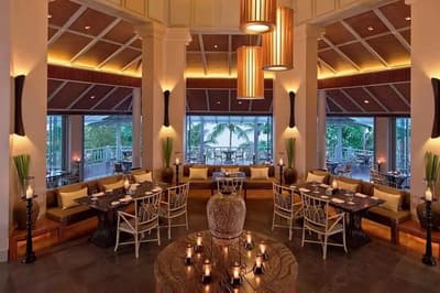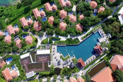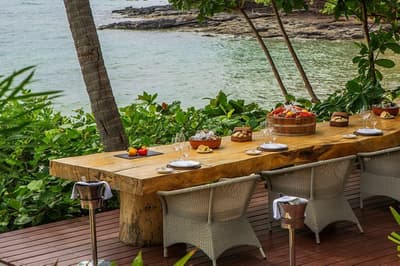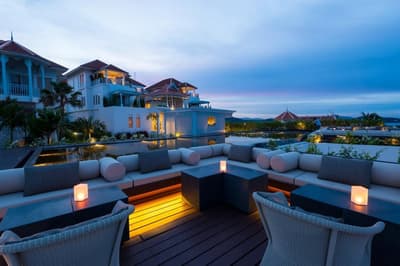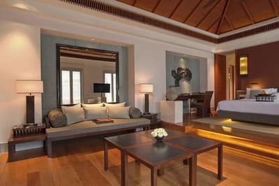 Le Cap Panwa prend ses distances avec les foules de touristes et c'est pile poil sur une plage de sable blanc que l'Amatara Wellness Resort vous invite à poser vos valises, au calme. Le complexe est immense mais ne manque pas de charme, entre ses escaliers en pierres grises, les tuiles orangées de ses toits typiquement thaïlandais et ses piscines encadrées de salas sur pilotis. Les chambres s'inspirent de la mer, du sable, de la pierre et du ciel et le sentiment d'apisement est enveloppant. Après avoir relâché les premières tensions en vous rendant compte que la vue sur la mer est superbe, respirez un grand coup les fragrances des jardins et faites quelques longueurs dans le petit bijou qu'est l'infinity pool. Oui, difficile de dissocier l'eau turquoise de l'horizon, mais très facile de réussir son premier selfie ! Le hammam aux carreaux de mosaïques argentées, les pavillons face au soleil pour faire votre yoga le matin ou encore la magnifique table en bois flotté pour déjeuner les pieds dans le sable font pencher la balance vers des vacances parfaites. Les restaurants sont aussi magnifiques les uns que les autres et s'ouvrent inlassablement sur l'océan, au travers de paravents couleur crème ou de portes martelées. Votre new daily routine s'achèvera chaque soir par un verre sur le rooftop du Sun & Moon, aux bassins couverts de galets.