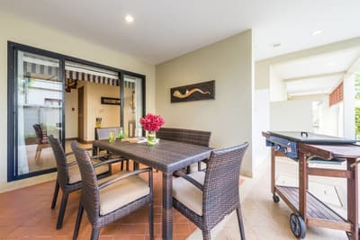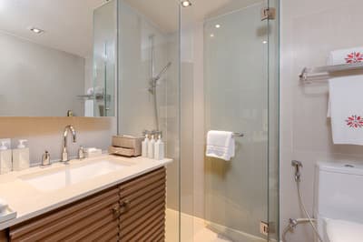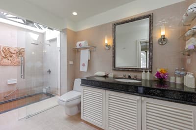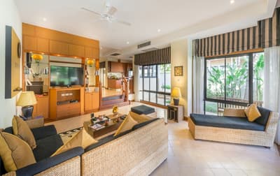 L’ensemble est dans un style de décoration élégant et raffiné avec un mobilier haut de gamme, des couleurs vives avec des œuvres d'art violettes royales thaïlandaises et un beau carrelage. La salle de bain est lumineuse et bien équipée avec une baignoire, le tout dans une atmosphère cosy et relaxante !