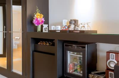 Baignoire, Installations pour faire du café et du thé, WiFi gratuit, Coffre-fort dans la chambre, Mini-bar, Lit king ou Twin.
