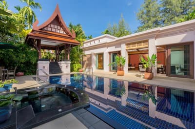 De style architectural thaïlandais traditionnel, elle profite d’une piscine privée de 14 m2 et d’une belle baignoire extérieure pour des moments de pure détente. À noter qu’elle comprend également une belle terrasse en bois meublée d'où vous pourrez vous relaxer.