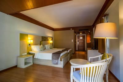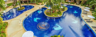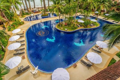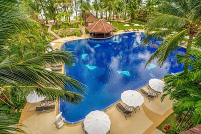 Et si le Best Western Bangtao Beach Resort & Spa était l’hôtel familial zéro défaut de Phuket ? Pour commencer, il y a l'emplacement : juste au bord d’une plage de rêve, sur la côte Ouest de l’île, celle de Bang Thao. Soit 7 kilomètres de sable blond et des arguments-chocs : elle est préservée, propre et jamais bondée. Idéale pour des séances baignade-bronzette ou de longues balades pieds nus… Sympa et pratique aussi, le quartier, où on trouve de tout. Et l’hôtel ? Zen, convivial, à taille humaine. Une juste dose entre activités sportives, animations soft et farniente. Il est isolé par de grands arbres qui n’obstruent pas la vue mer et permettent d’éviter le plein cagnard. Le site, verdoyant, se répartit autour de deux grandes piscines plutôt originales : des dauphins statufiés font office de jets d’eau, d’autres sont dessinés en mosaïques au fond du bassin. Un peu kitsch, mais original. Repérez vite le charmant îlot central au milieu de l’eau avec ses quelques transats, c'es le meilleur spot de l'hôtel. Les restaurants donnent sur la piscine et la mer, comme presque toutes les chambres, certaines communicantes. Un peu à l’écart, les bungalows sont plus indépendants, plus élégants aussi avec leur haut plafond pointu habillé de bois. Et tout cela est incroyablement dépaysant.