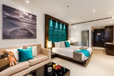 Le Cape Sienna , c'est d'abord et avant tout une vue exceptionnelle ! Et pour cause, il est perché sur les hauteurs de Kamala, l’une des plus belles plages de la côte Ouest de Phuket. Les chambres, suites et villas de luxe disséminées sur le domaine à flanc de falaise sont toutes, sans exception, orientées vers la mer d’Andaman. Pas de jaloux ! Décor à grand spectacle, zéro vis-à-vis : ici, vous vous mettrez vite en mode contemplation, de votre vaste terrasse avec Jacuzzi perso comme de votre fauteuil design sur le rooftop près de la piscine à débordement, au plus près du rivage. Au coucher du soleil, c’est le paradis sur terre, en mode fleur bleue. Plus proche de l’hôtel urbain que du resort balnéaire, le Cape Sienna cultive un esprit lifestyle et sophistiqué, mais sans chichi et tout en décontraction. En témoignent ses intérieurs, épurés et chaleureux, récemment rénovés. Il se distingue aussi par son atmosphère calme et reposante, zéro stress. Si l’envie vous prend de profiter de l’animation de la plage et du village en contrebas, avec ses boutiques et restaurants, il suffit de marcher dix minutes. Au retour, la pente est raide, alors n’hésitez pas à louer un scooter, c’est l’occasion ou jamais.