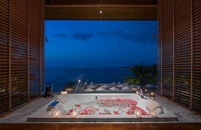 Idéale pour un couple en lune de miel, elle est plus spacieuse et dispose d’une terrasse avec une baignoire jacuzzi privée et offre également une vue imprenable sur la mer pour des instants romantiques avec votre bien-aimé.