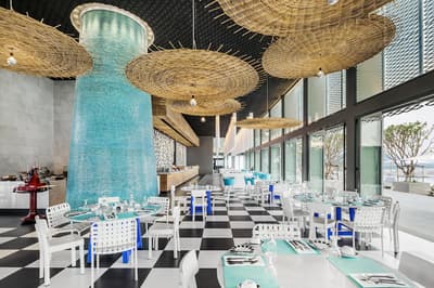 Peu importe où vous êtes, vous avez vue sur la mer. Et pas n’importe laquelle : LA vue panoramique à 180 degrés sur la baie de Phang Nga. Surplombant la mer d’Andaman, entouré de montagnes calcaires, Le Como Point Yamu est, comme son nom l’indique, à la pointe du cap Yamu. Certes l’hôtel n’a pas les pieds dans l’eau, mais c’est grâce à sa position dominante que la vue est si unique. Côté déco, on est en plein design contemporain made in Italy (la designer est née à Turin). Il y a du bleu partout, à telle point que vous aurez parfois l’impression de ne pas faire la différence entre l’hôtel et la mer. Et franchement, ça en jette ! Au Como Shambhala Spa, c’est le même délire, la vue est tout aussi magique. Vous ne saurez même plus où donner de la tête entre le hammam, le sauna, le jacuzzi, le salon de beauté… Mais ne passez pas à côté du massage signature pour rééquilibrer votre corps avec votre esprit. Ainsi soit-il ! A la piscine, l’ambiance est inlassablement à la détente. Vous profitez encore et toujours d’une vue de dingue. Le long de l’immense bassin, lors de votre bain de soleil quotidien, vous êtes confortablement installé sur votre transat XXL. Pensez à vous hydrater régulièrement en profitant des trois Happy Hours de la journée. Accoudé à l’imposant comptoir en bois brut de l’Aqua Bar, profitez de la belle lumière qui traverse les moucharabiehs, et particulièrement à l’heure où le ciel se teinte de beaux dégradés d’orange, de bleu et de rose...