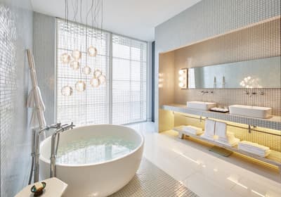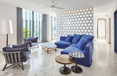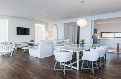 La décoration est élégante et cosy avec un lit king, paré de draps en coton égyptien et du mobilier aux couleurs tropicales. Elle est dotée également d’un bel espace de vie avec salle à manger intérieure, et la salle de bains comprend une baignoire avec double vasque. Le tout dans une atmosphère relaxante et tropicale !
