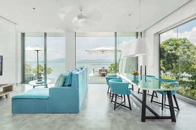 Idéale pour un couple, elle offre une vue exceptionnelle sur la mer d’Andaman et dispose de fenêtres du sol au plafond pour profiter du panorama. Elle comprend un balcon avec table et chaises d’où vous pourrez profiter de la vue imprenable.